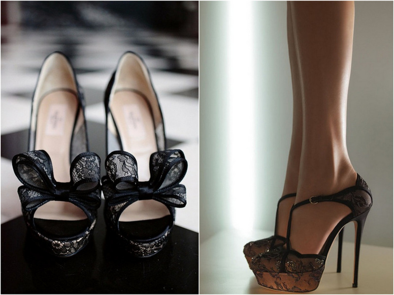 Bildet over er bare til å dåne av, og bruden kunne ikke hatt noen mer perfekte sko til den kjolen. Skoene er fra Stuart Weitzman, og med sløyfebånd laget av brudens venninne. En idè å tenke på til dine egne bryllupsko. Vi har funnet endel gode butikker med lekre sko, blant annet SOLE SOCIETY og ZAPPOS.COM. Du kan også finne mye lekkert på ETSY - også accessories til skoene.