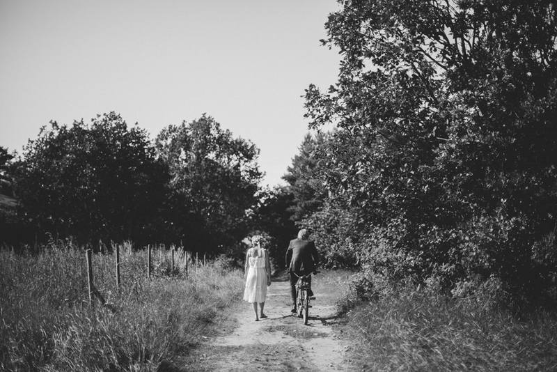 BRUDEN FORTELLER: Det er vanskelig å velge seg ut ett minne. Men jeg tror det å ankomme enga på tandemsykkel med faren min, og se alle i familien som jeg er så glad i vente på oss under den store eika, kommer ganske høyt opp. Selve vielsen var også veldig fin. Den var akkurat passe lang, og han som viet oss var en søt og lettrørt Kosterboer som også var som håndplukket for oss. Ordene han hadde valgt ut var så passende at det traff oss rett i hjertet, og jeg tror alle ble beveget. Vielsen var nær og intim, enkel og ekte på en måte. Det handlet bare om oss to, kjærligheten i mellom oss, og valget vi tok den dagen.
